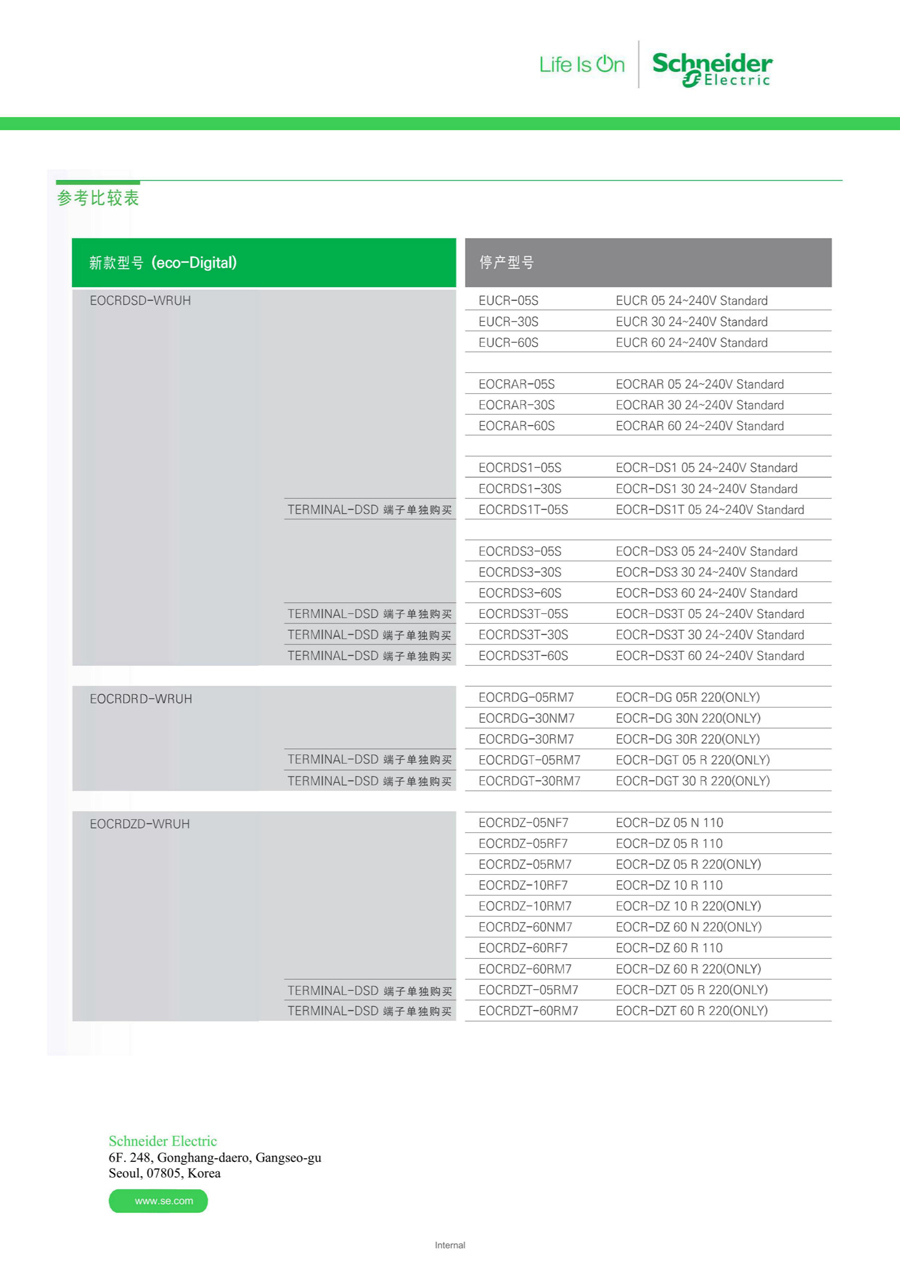 4. 停產型號:EUCR / EOCRAR / EOCRDS1(T) / EOCRDS3(T) / EOCRDG(T) / EOCRDZ(T)